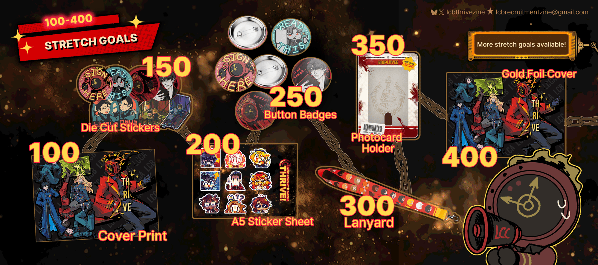 Our leftovers includes both set and individual items of the bundles and stretch goals